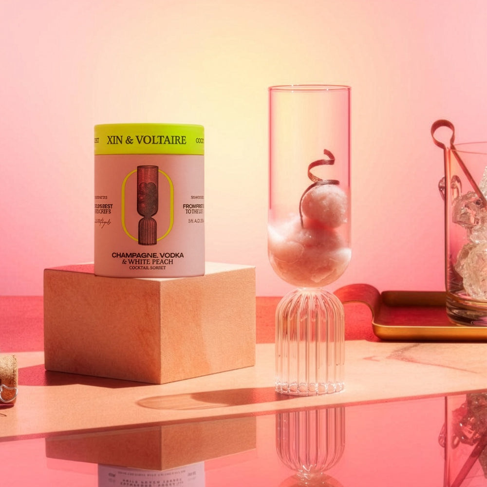 You’ll receive your Xīn and Voltaire sorbet cocktails packaged in a wool-insulated box and shipped containing dry ice to keep your sorbets frozen. The sheep’s wool can be repurposed – see woolcool.com for more information. The contents of the box will stay frozen for up to 24 hours once it has left distribution.